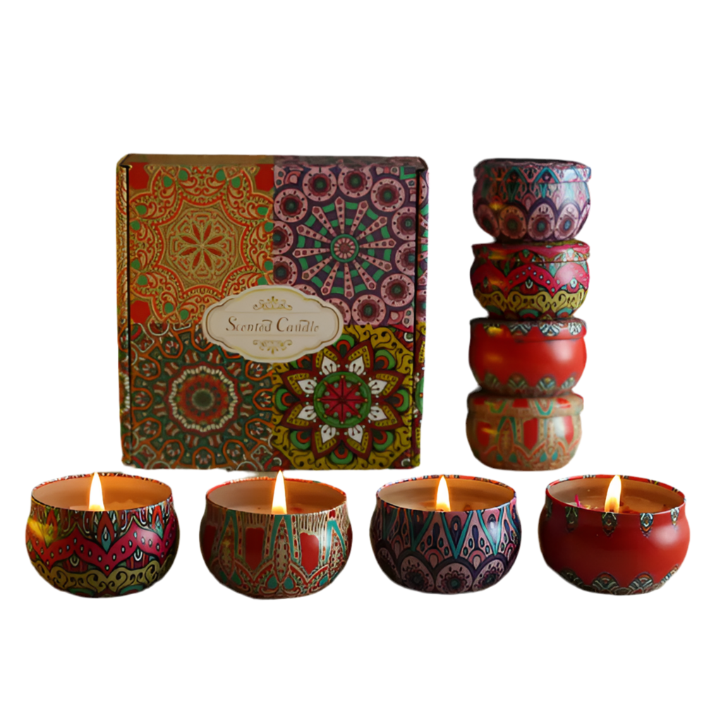 Boho Geurkaarsenset – 4 stuks – Natuurlijke geuren