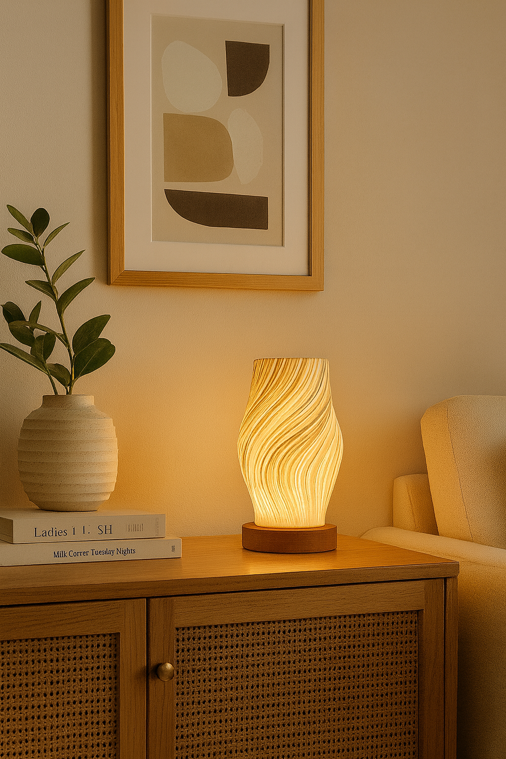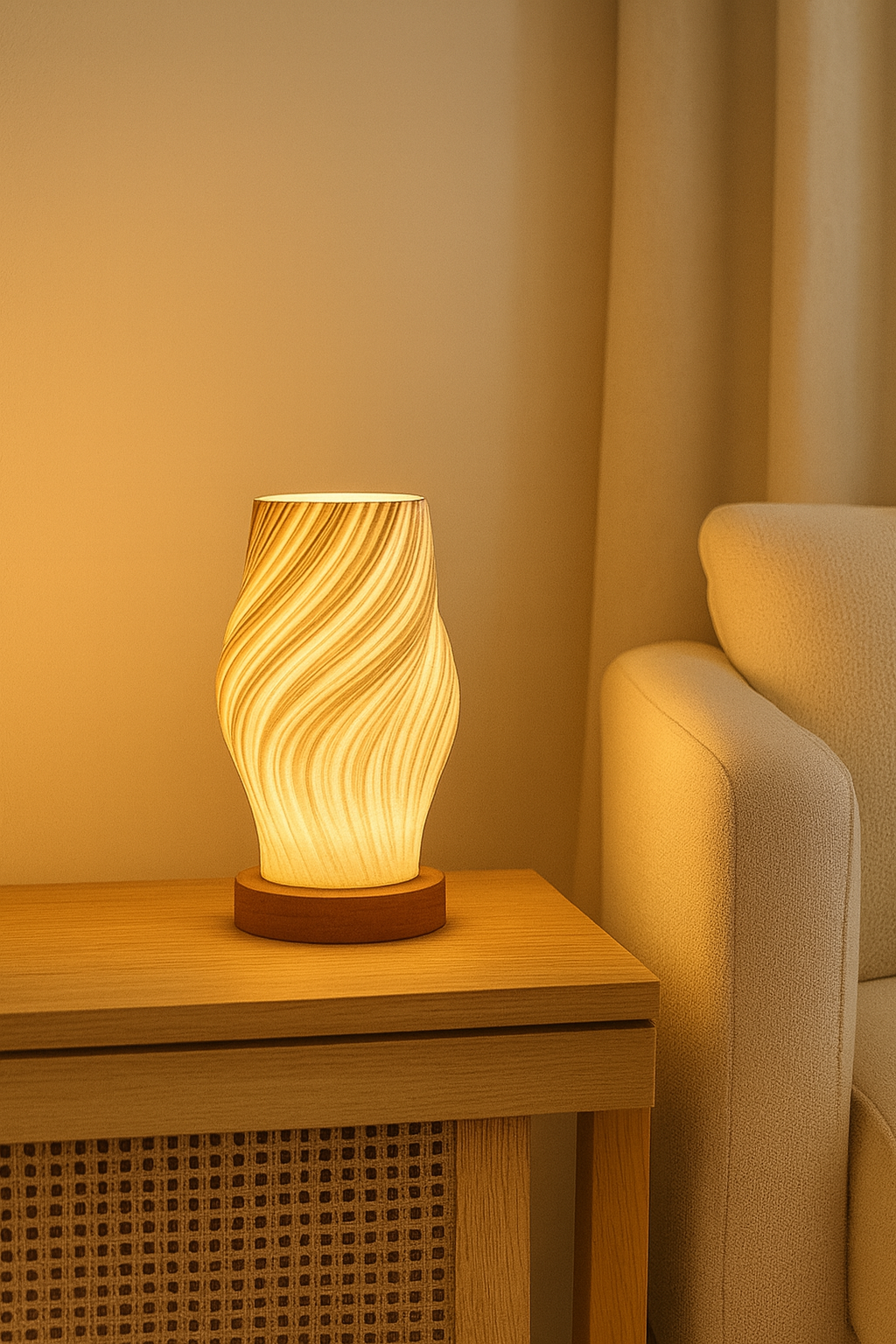 De Livideco Twist Tafellamp is een echte blikvanger voor liefhebbers van modern minimalisme met een organische twist. Deze stijlvolle tafellamp combineert natuurlijk hout met duurzaam PLA in een spiraalvormig ontwerp dat niet alleen verlichting biedt, maar ook warmte en rust uitstraalt.