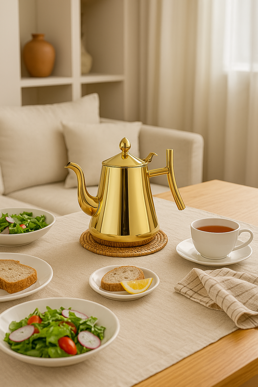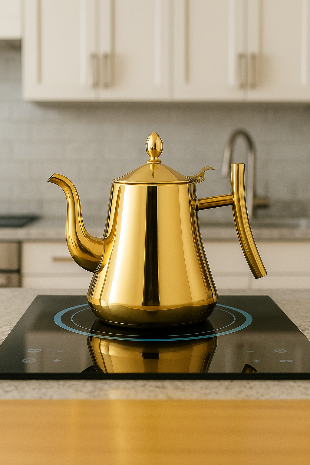 Breng luxe en functionaliteit samen in je keuken met de Livideco Waterkoker. Deze stijlvolle waterkoker van hoogwaardig roestvrijstaal heeft een capaciteit van 1 liter en is geschikt voor gebruik op inductie. Met zijn elegante gouden afwerking en ergonomisch design is het niet alleen een praktisch hulpmiddel, maar ook een echte eyecatcher in je keuken.